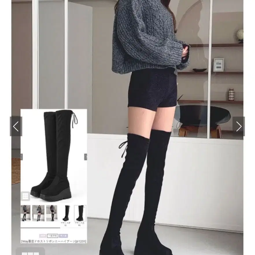 GRL 2Way 통굽 드로스트 리본 니하이 부츠 [zr1231]