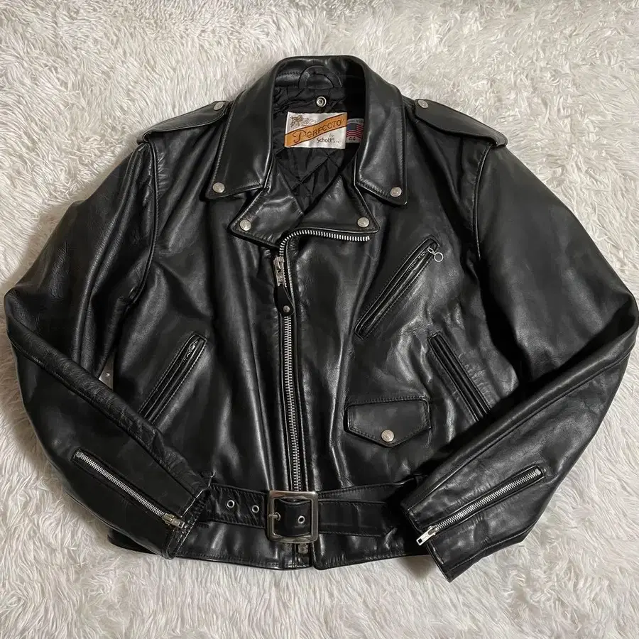 schott의 퀼팅이 특징인 라이더 자켓입니다. 연식은 비교적 새로운 자켓입니다. 눈에 띄는 상처나 얼룩은 특별히 없습니다.