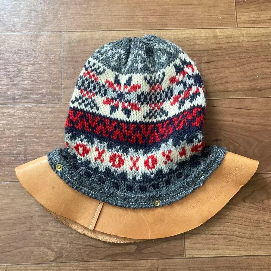 빈티지 노르딕 무늬 니트 모자 가죽 햇