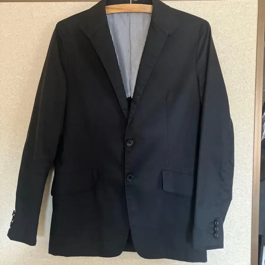 블랙 테일러드 자켓 스트라이프 안감