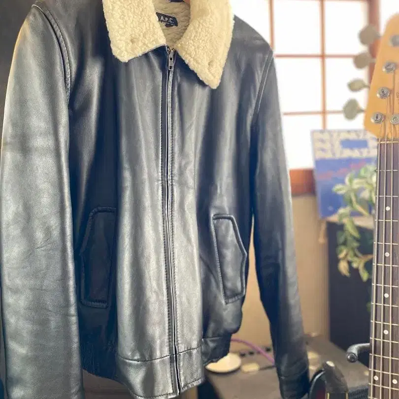 A.P.C. 2000s 옷깃 보아 가죽 자켓 (양가죽)