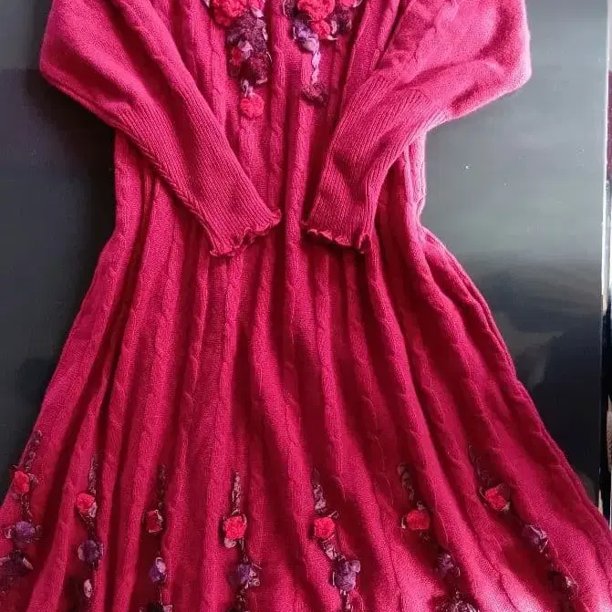 아틀리에 마리코 꽃무늬 자수 빨간색 롱 니트 원피스