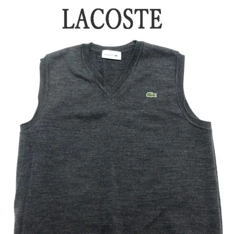 ◇ LACOSTE 라코스테 니트 베스트 원포인트 로고 사이즈 2 V넥 그레이 울 남성용 슬리브리스 캐주얼