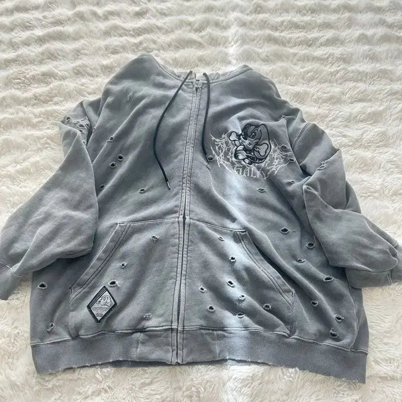 GALFY 염색염색 강아지 보로보로 후드티 그레이