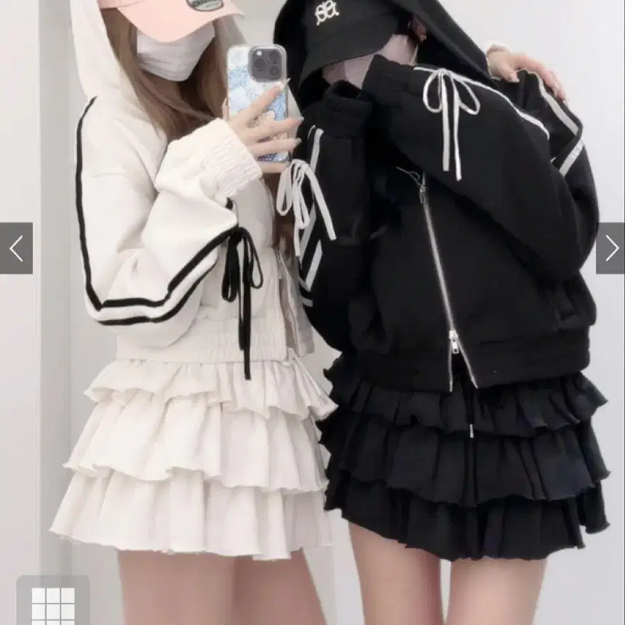 그레일 더블 지퍼 후드티 x 티어드 미니 스커트 맨투맨 셋업 블랙