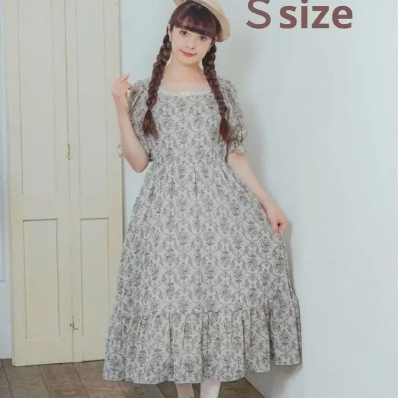 [ S ] 아오키 미사코 시마무라 콜라보 다마스크 무늬 원피스 화이트