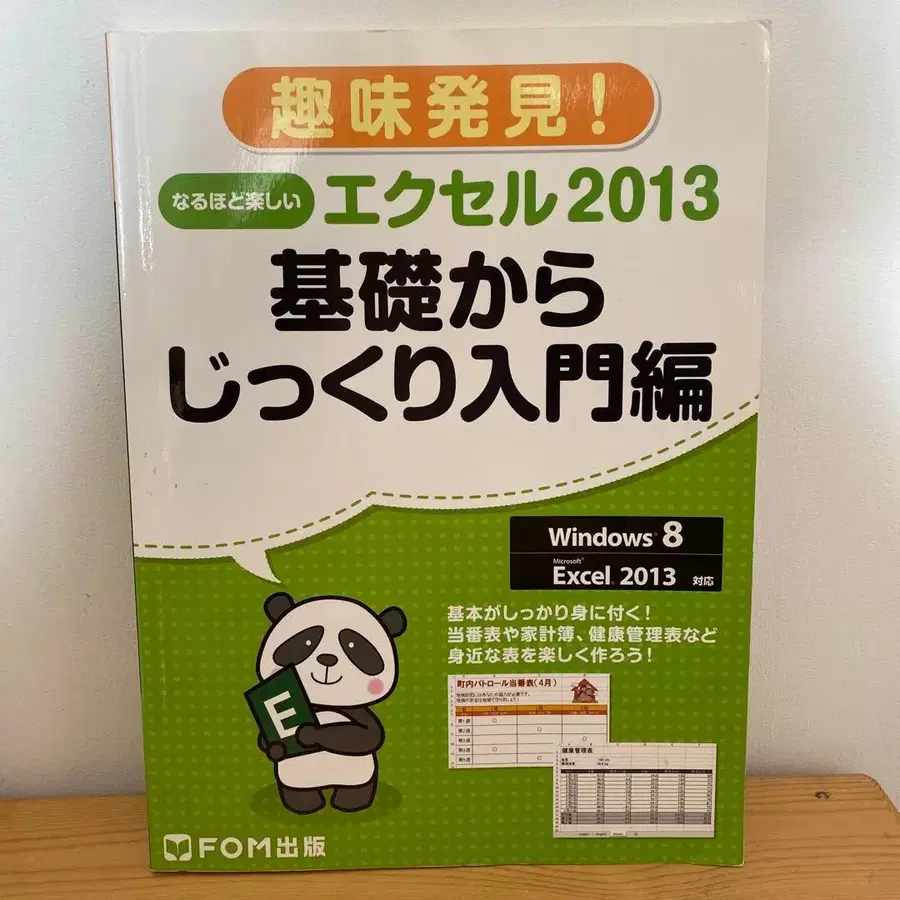 엑셀 2013의 기본부터 응용까지 망라한 입문서. - 타이틀: 엑셀 2013 기초부터 차근차근 입문편 - 대응 OS: Windows 8 - 출판사: FOM 출판 - 가격: 1200엔 - 목차: 엑셀의 기본, 당번표, 가계부, 건강 관리표 등의 표 작성 등 컴퓨터 학원에 다닐 때 사용하고 그 후 보관했습니다. 글씨도 크고 내용은 알기 쉬웠습니다. 연필로 쓴 부분은 지웠습니다. 전체적으로 깔끔한 편이지만, 찢김, 얼룩, 파란 펜으로 선을 그은 부분, 노란색으로 변한 오른쪽 상단에 얇은 벗겨짐이 있습니다. 마침 찢어진 부분이 닫았을 때 벗겨진 것 같습니다. (파란 펜 부분은 하얗게 된 선의 조금 위쪽입니다.) 읽는 데는 문제가 없을 것이라고 생각합니다. 사진 4, 5, 6번째 장에서 확인해 주세요. 표지도 스크래치나 약간의 흠집이 있습니다. 중고품에 이해가 있는 분의 구매를 기다립니다.