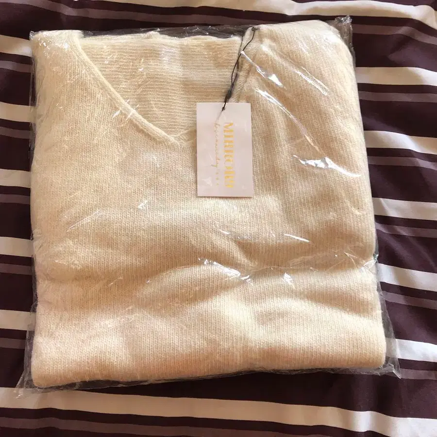 크림색 V넥 니트 스웨터