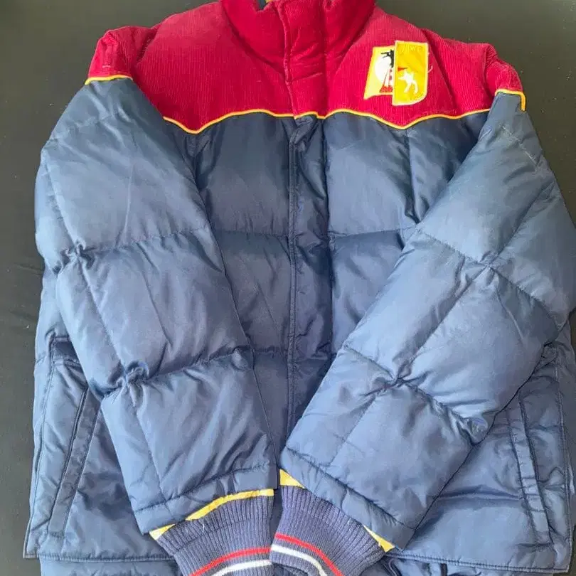 다운 자켓 네이비/와인 레드 퀼팅