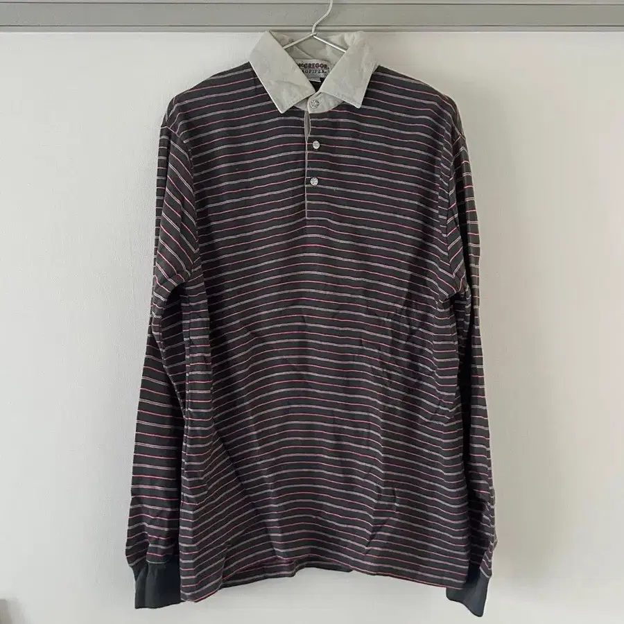 구제 의류 McGregor 긴팔 피케 셔츠 다크 그레이 스트라이프