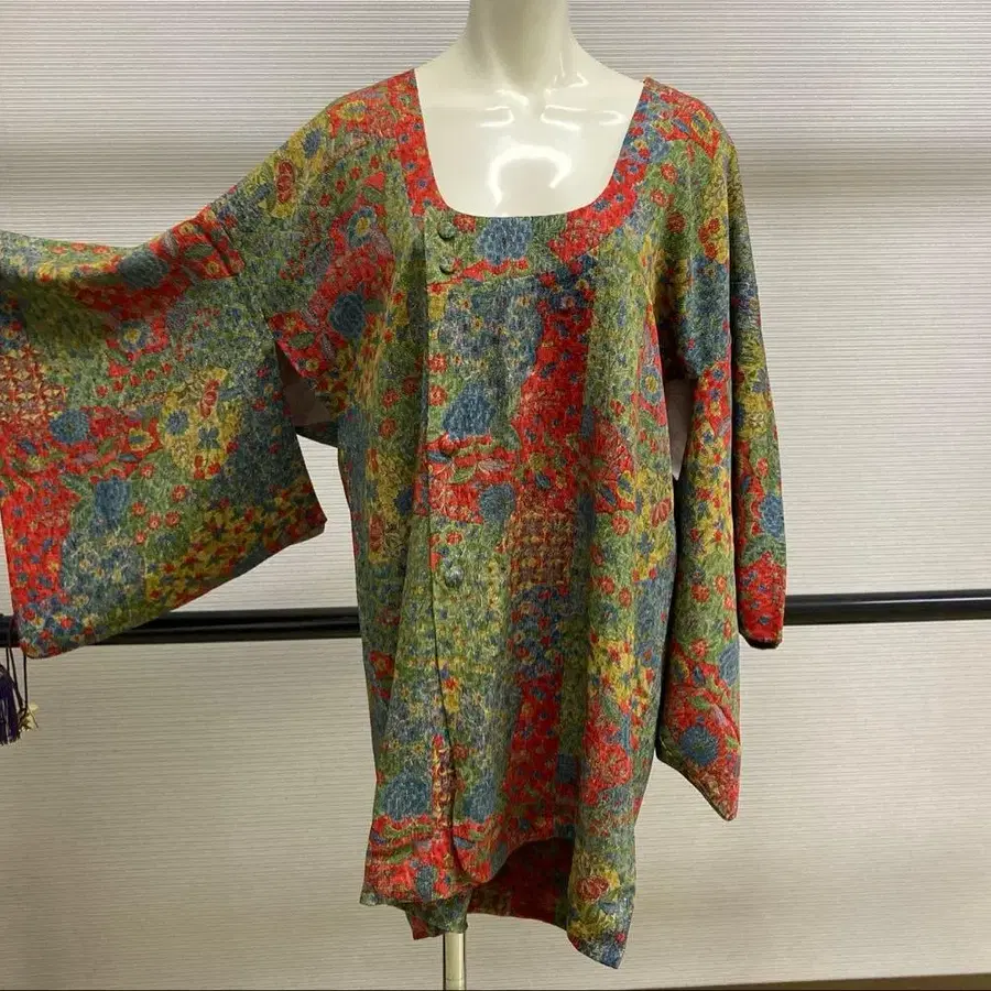 도행 롱 코트 순수 실크 꽃무늬 넓은 소매 기장 87cm 화장 68cm