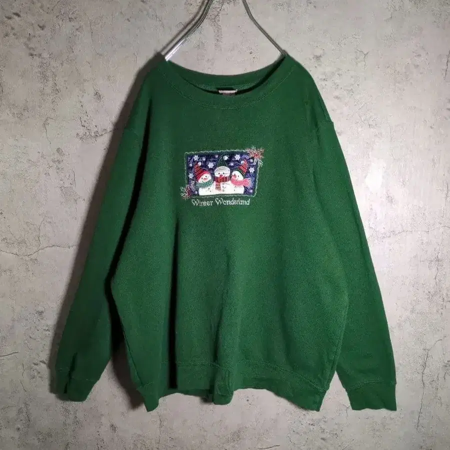 [ 크리스마스 ] 자수 스노우맨 맨투맨 그린 XL 눈사람 겨울