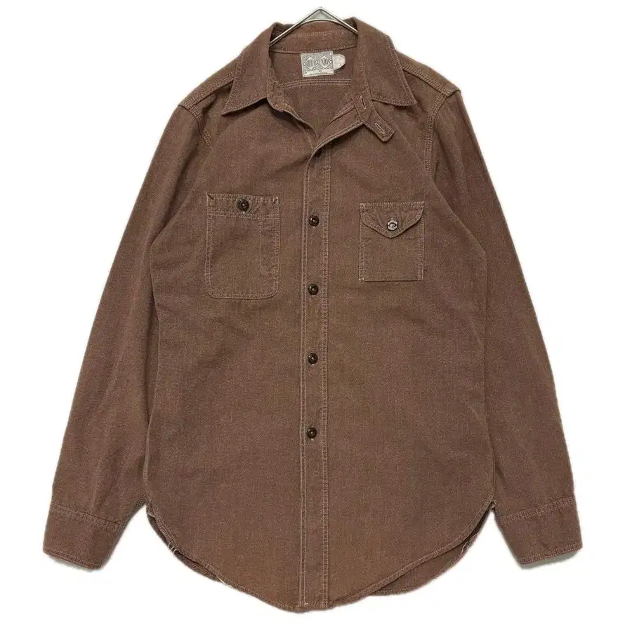 레어 새상품급 McCoy 샴브레이 턱끈 셔츠 고마시오 브라운 워크 긴팔
