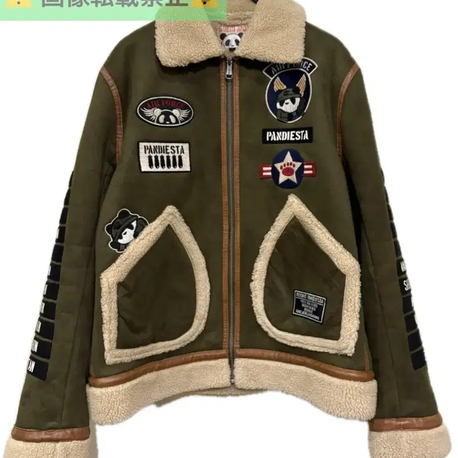 자동 번역되었어요. 원문보기*팬디에스타 PANDIESTA 와펜&자수 페이크 무스탕 플라이트 자켓 L BJBE. AB