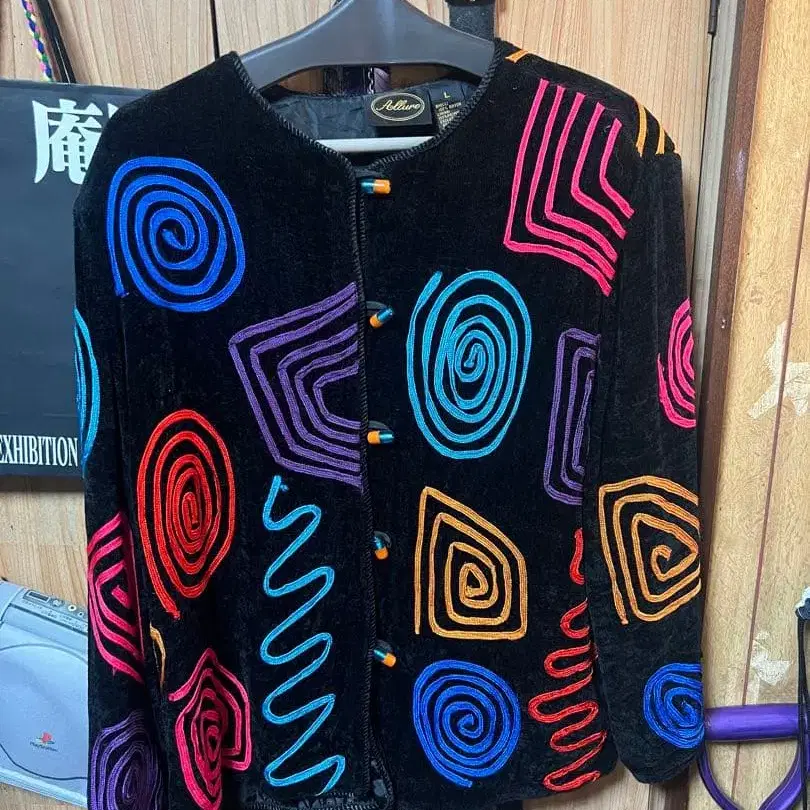 추상 무늬 벨벳 두꺼운 원단 가디건