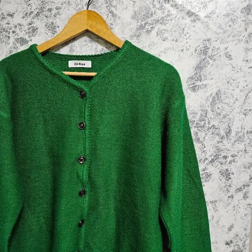 [ 새상품급 ] Oil Rice 선명한 그린 니트 가디건 V넥 그린