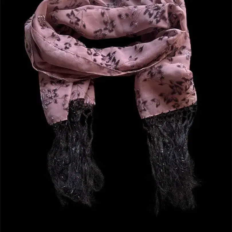 꽃무늬와 라메가 럭셔리한 오간자 스톨 요코하마 스카프 세련된 베이지