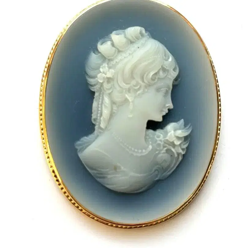 [빈티지] 카메오풍 브로치 여성의 옆모습 디자인 빅