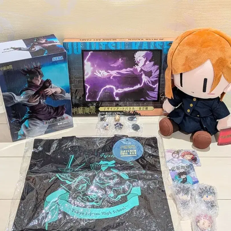 주술회전 디자인 아트 패널과 캐릭터 굿즈 11점 세트. (낱개 판매 불가합니다.)