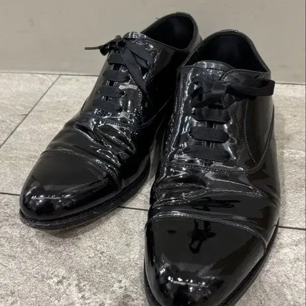 블랙 에나멜 스트레이트 팁 드레스 슈즈