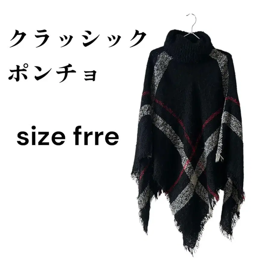 따뜻한 방한 대책 클래식 컬러 터틀넥 판초 프린지 디자인