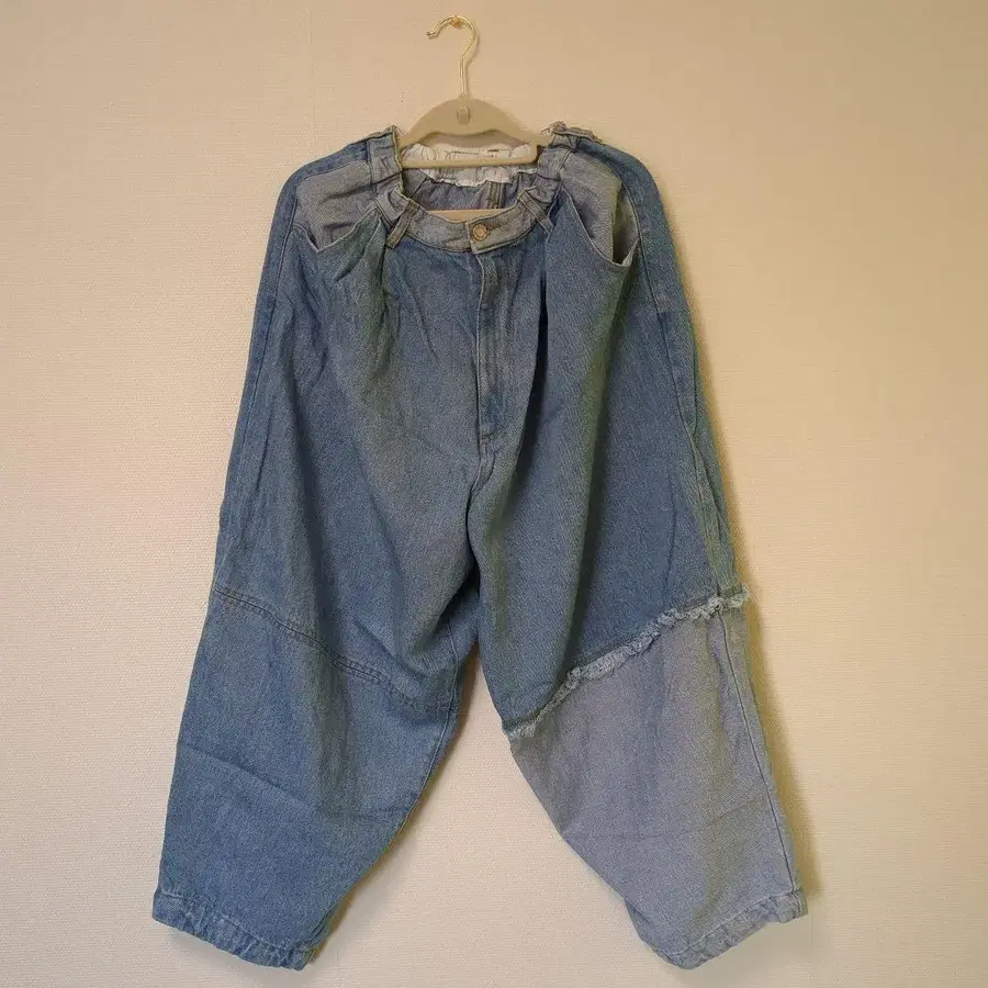 프린지 가공 라이트 블루 데님 와이드 팬츠