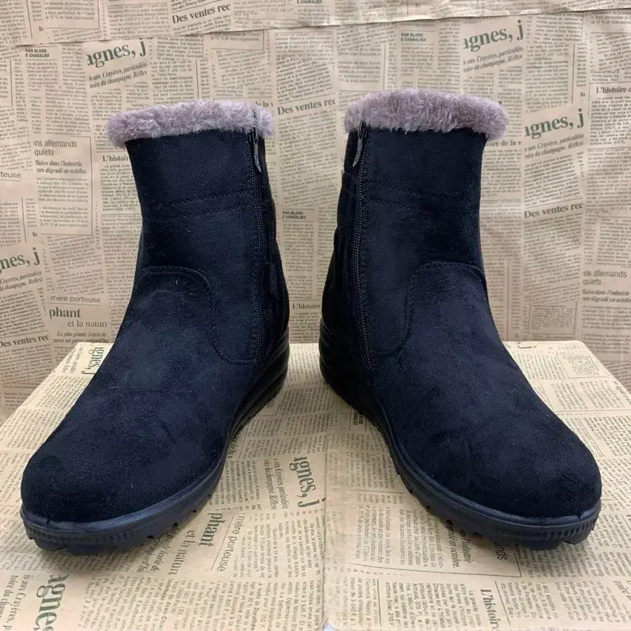 여성용 블랙 리본 포함 부츠 숏부츠 스웨이드 22cm