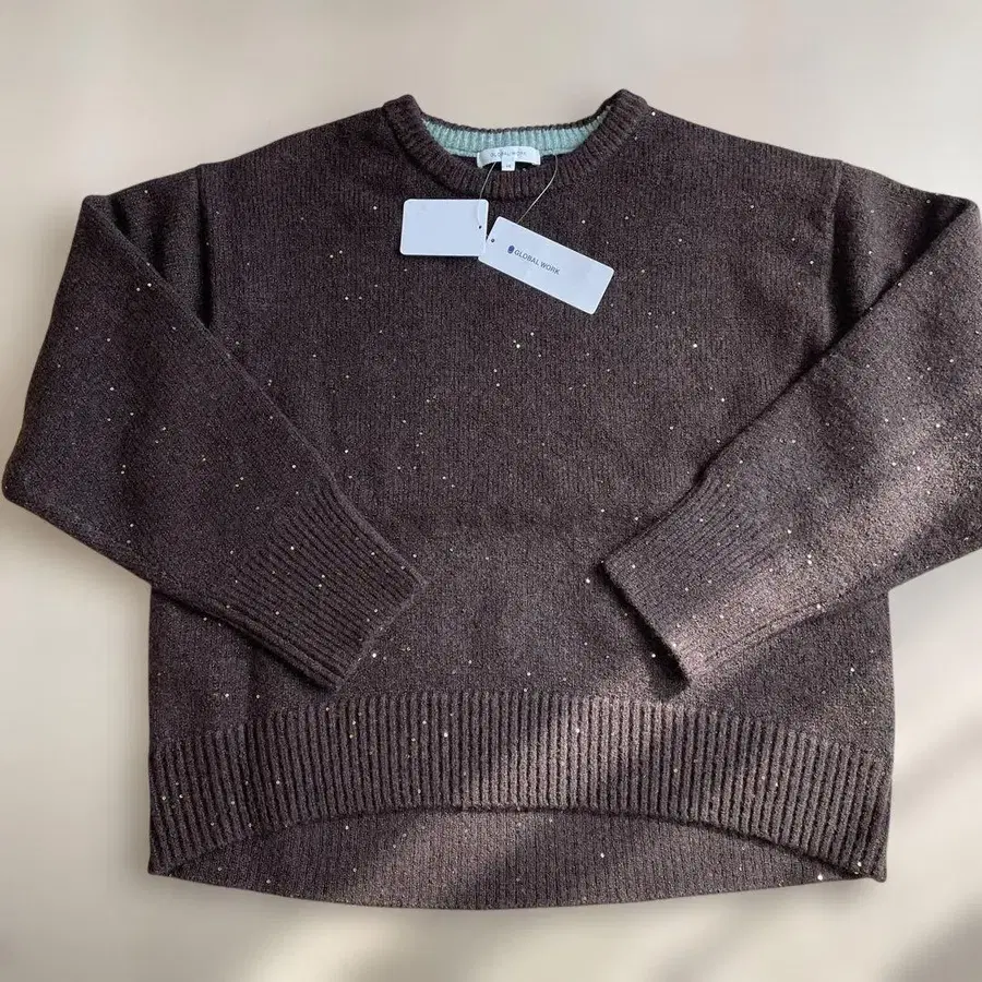 새상품 GLOBAL WORK M사이즈 라메 믹스 브라운 니트