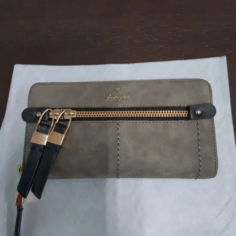 그레이 스웨이드풍 장지갑 골드 지퍼