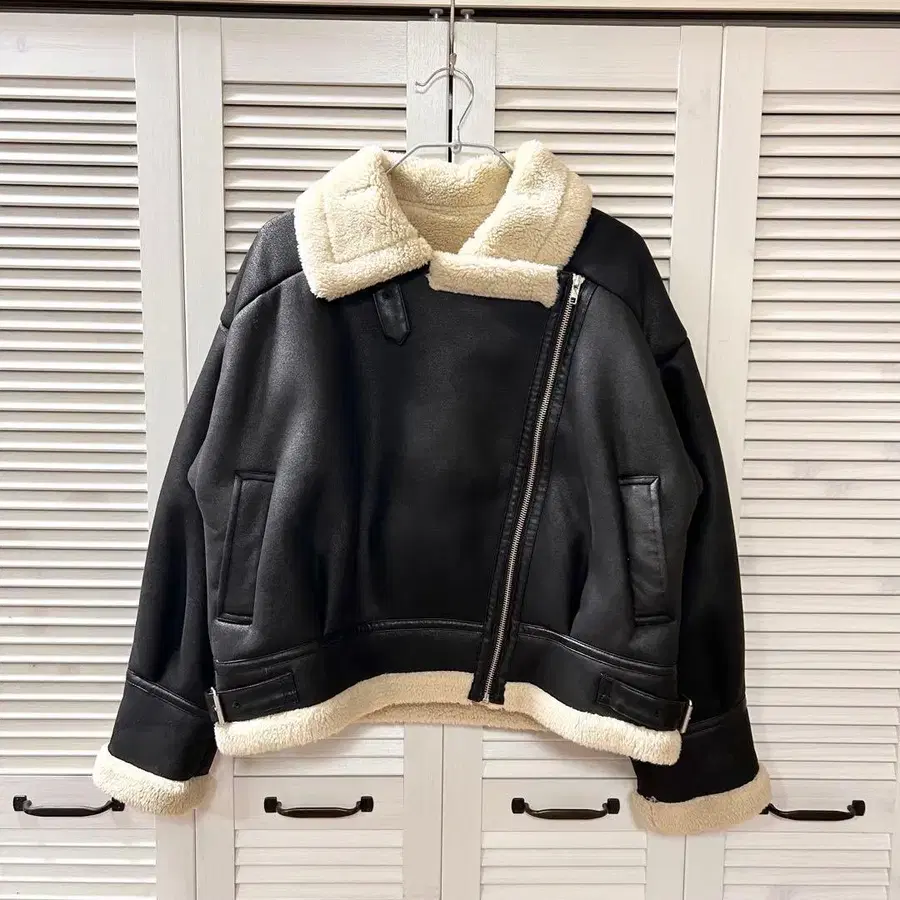 새상품급 [ dazzlin ] 레더라이크 보아 숏 블루종 F 사이즈