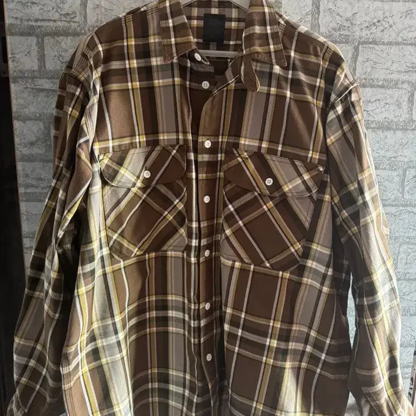 새상품급 다이와 피어 39 브라운 체크 무늬 긴팔 셔츠