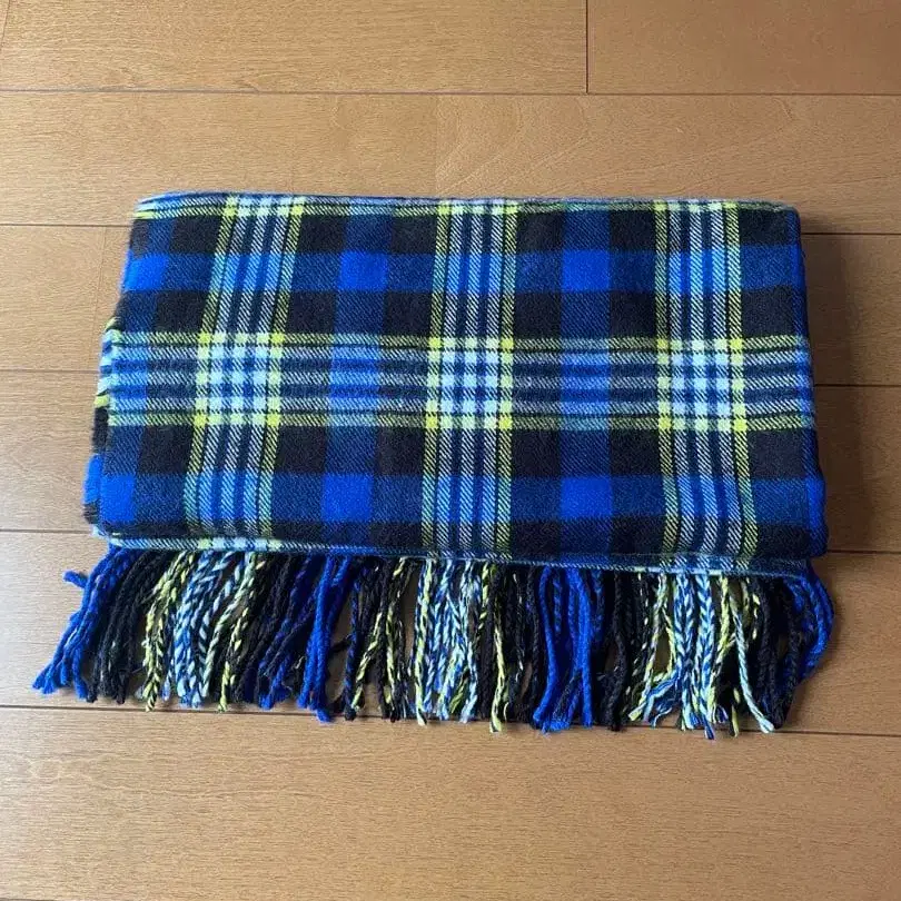토사카 히로오미 청흑 체크 무늬 프린지 머플러