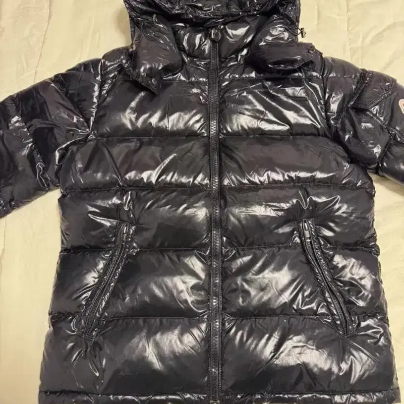 블랙 후드 부착 다운 자켓