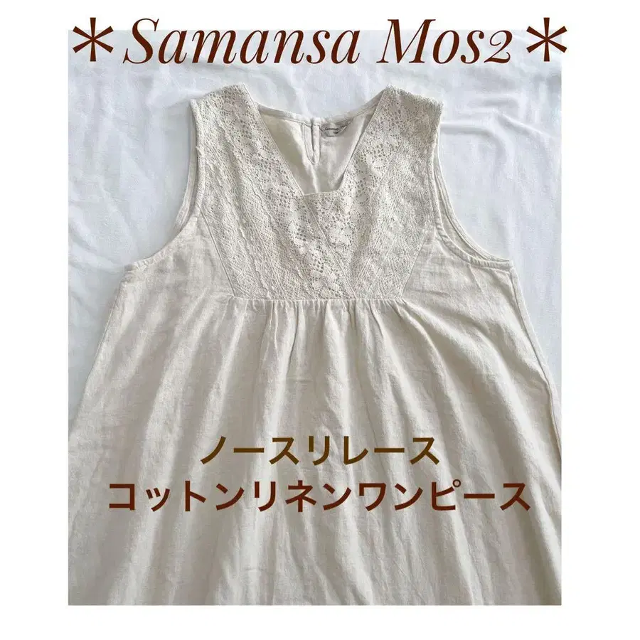 Samansa Mos2 슬리브리스 레이스 코튼 린넨 원피스