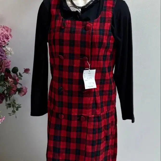 #패션 #여성용 #여성 #격자 무늬 #학생 #평상복 #오버롤 스커트 #원피스 #새상품 #미사용 #폴리에스테르 #레이온 #M #체크 #그린 #노랑 #빨간색 #벨트 #관리No. 5831마60