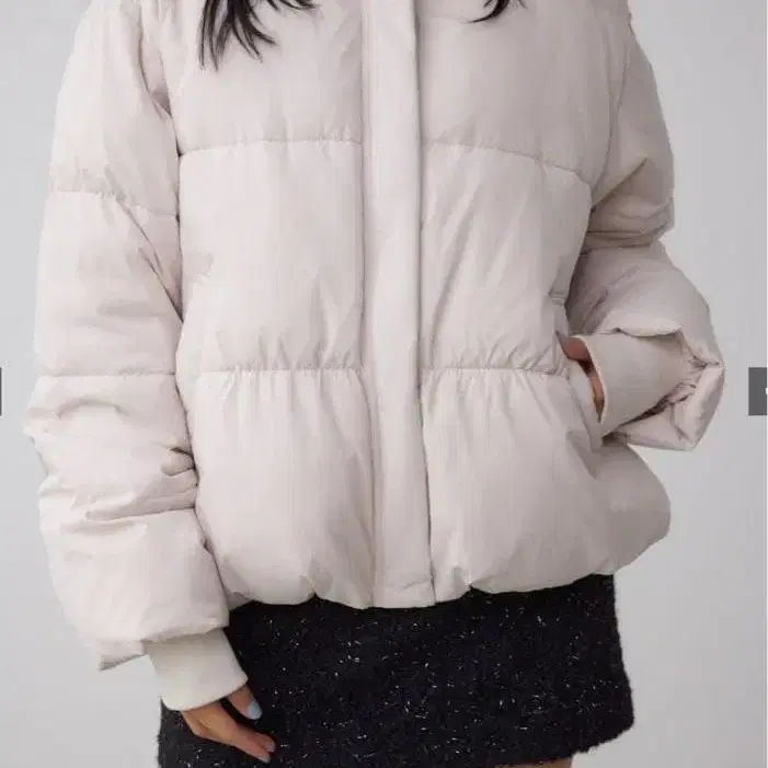 아줄 후드 부착 크림색 다운 자켓