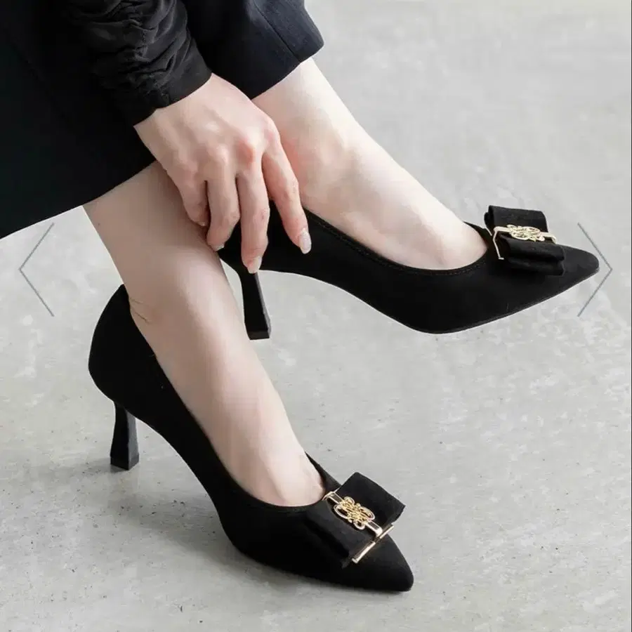 [달릴 수 있는 슬림 레그 펌프스] 모노그램 부품 리본 핏 펌프스