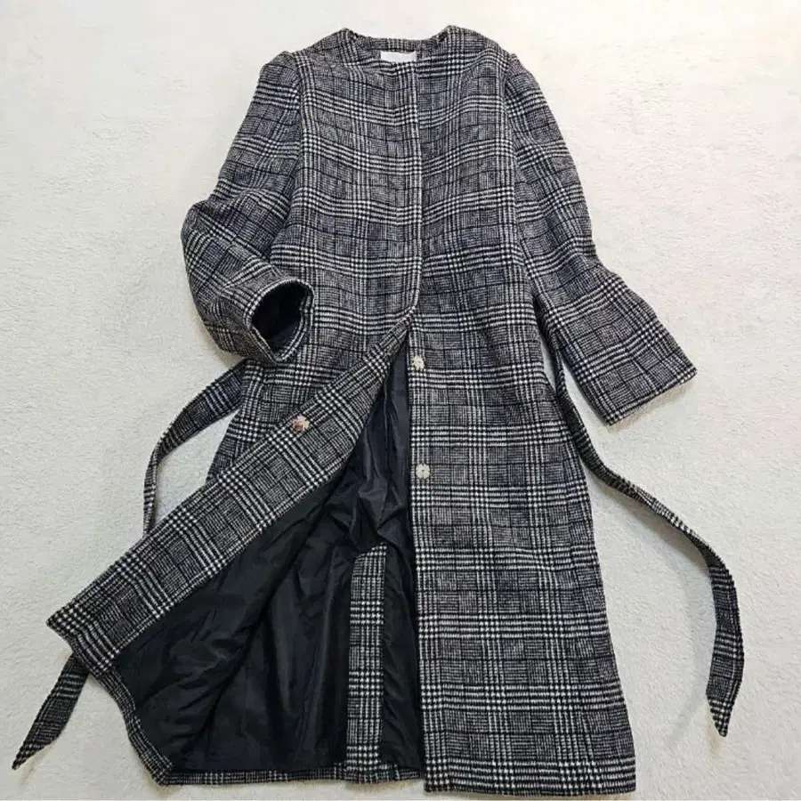 [새상품급] CELFORD 노카라 롱 코트 글렌체크 벨트 포함 38