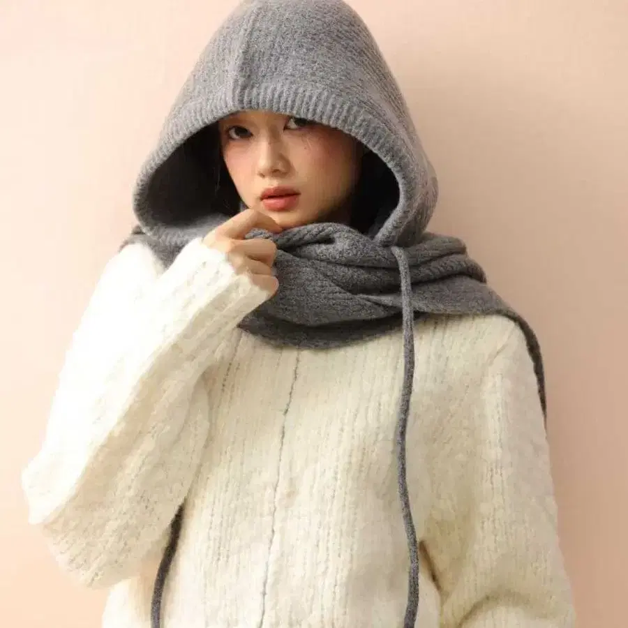Chiina/ 니트 후드 머플러 롤리스 니코