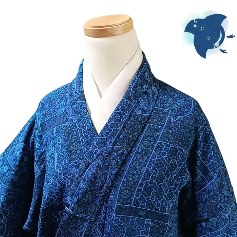 C34 치도리야 기모노 코몬 워셔블 기모노 화학 섬유 파랑 톨 사이즈