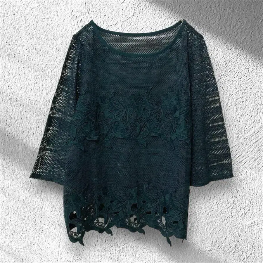 밑단 레이스 디자인의 그린 메쉬 T셔츠입니다 ✨