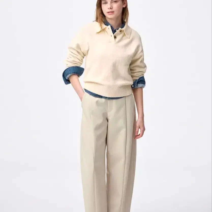 피아체레 속기모 스트레이트 팬츠 베이지