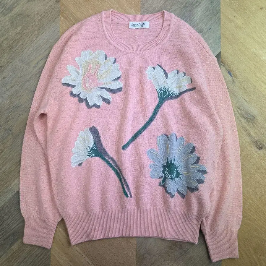 DANA PARIS 꽃무늬 자수 니트 스웨터 긴팔 새상품급 라이카 y58