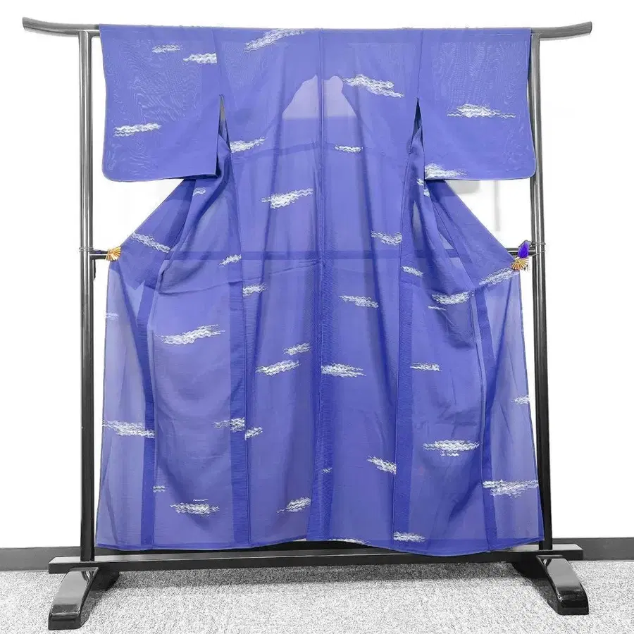 여름용 명주 유선 무늬 탁한 블루 코몬 기모노 061t