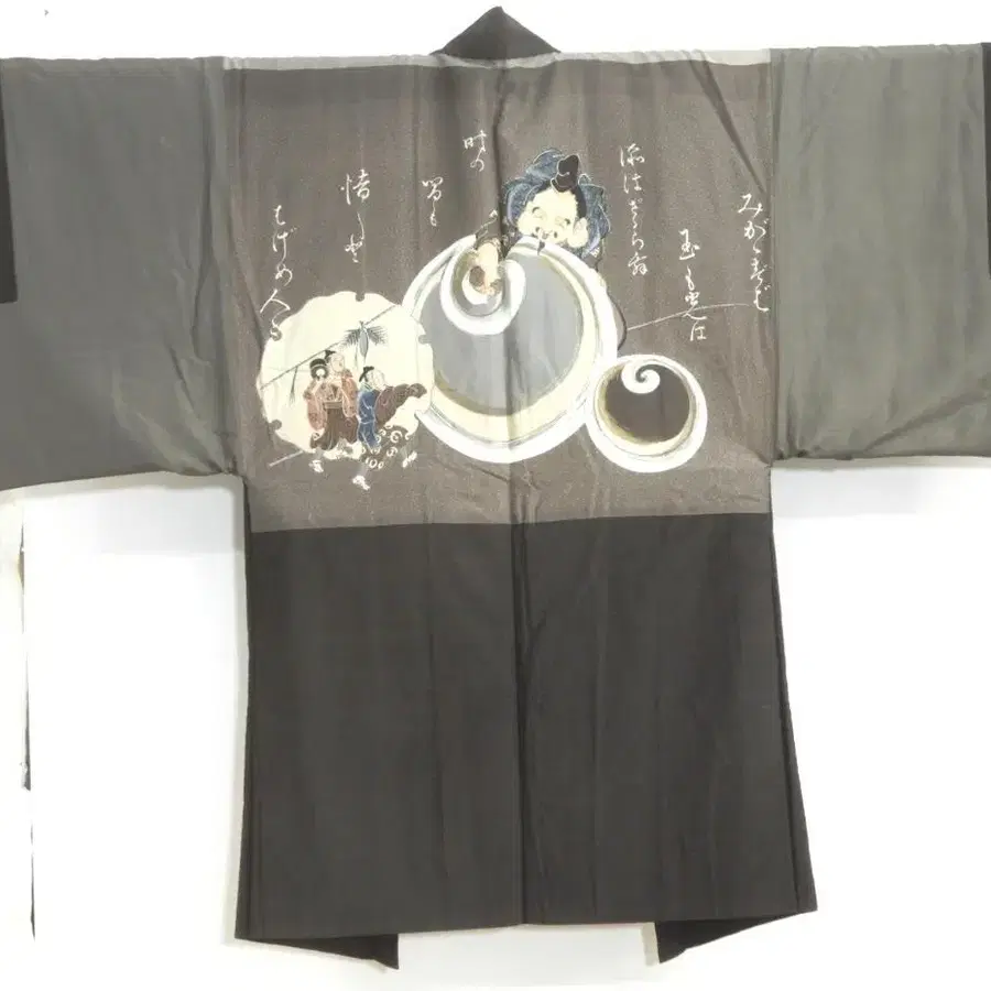 순수 실크 보쥬 에비스님 길조 문양 쇼와 남성용 겉옷 기장 104cm
