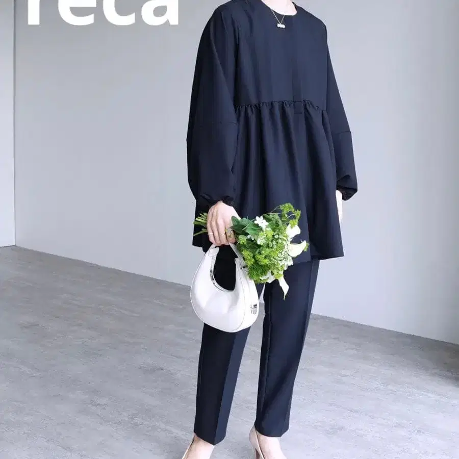 reca 페플럼 개더 자켓 테이퍼드 팬츠 2종 세트