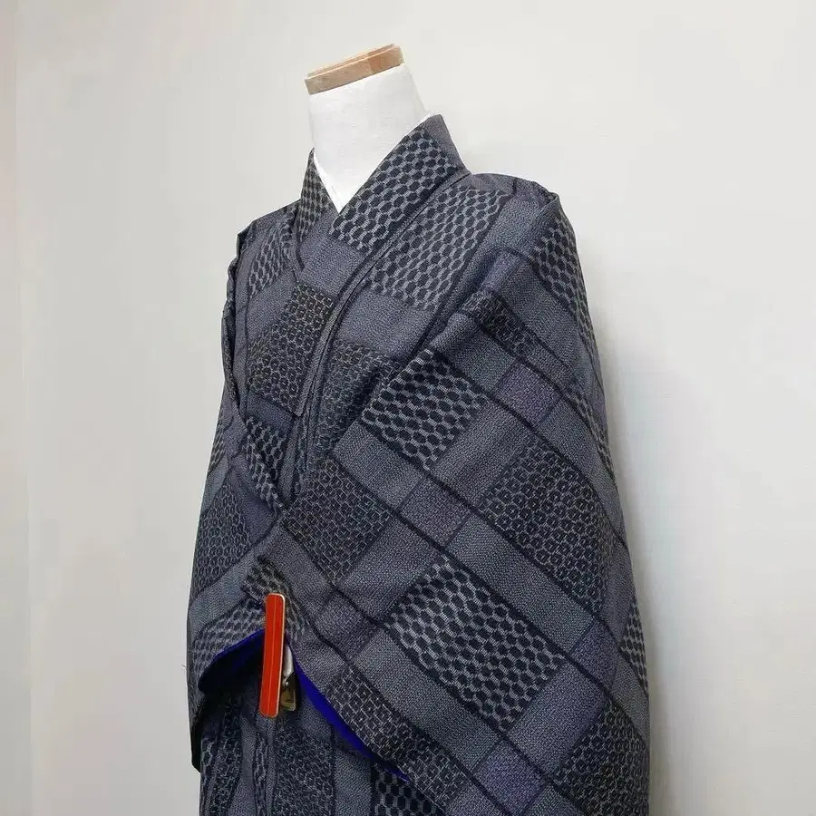 코몬 변형 격자 기하학 패턴 모노톤 퍼플 기모노 081t