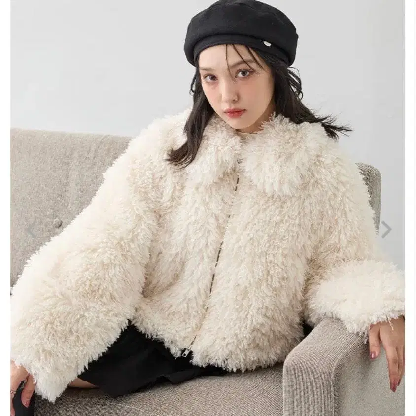 INGNI 아이보리 스텐 칼라 푸들 에코 퍼 블루종