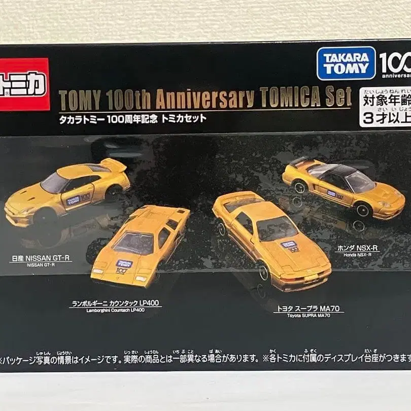 타카라토미 100주년을 기념하는 특별한 토미카 세트입니다. ◎ 람보르기니 카운탁 LP400 ◎ 도요타 수프라 MA70 ◎ 닛산 NISSAN GT-R ◎ 혼다 NSX-R - 브랜드: 타카라토미 - 모델명: 토미카 100주년 기념 세트 - 색상: 금색 - 차량 수: 4대 - 대상 연령: 3세 이상 방문해 주셔서 감사합니다. 시리즈 - 토미카
