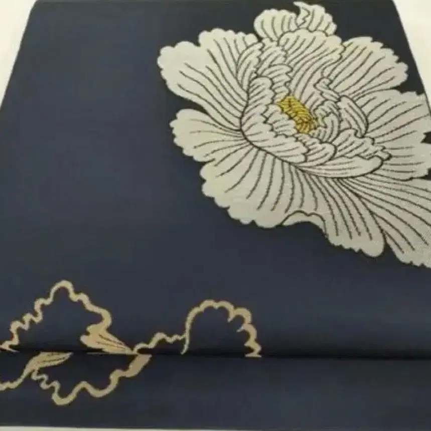 후쿠로 오비 네이비 꽃무늬 자수